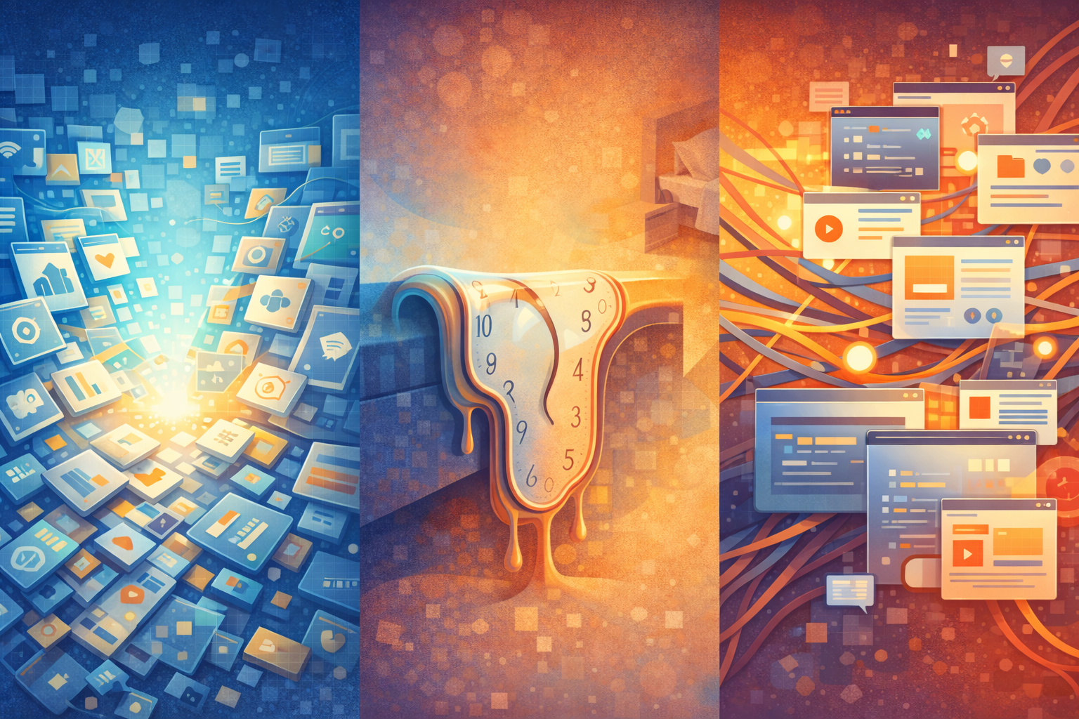 Employees run multiple AI agents and threads in parallel, let AI generate alternative versions while they write, and keep half an eye on outputs while trying to focus on something else. The presence of a “partner” that never gets tired encourages constant context switching: checking, nudging, re-prompting, and reconciling. The result is an ambient sense of being always behind, even as visible throughput increases.